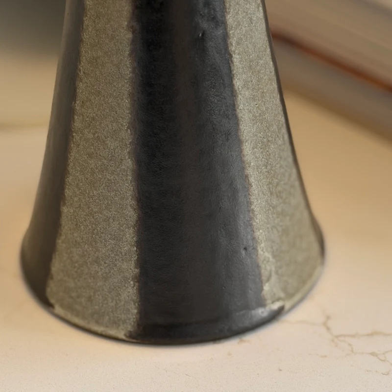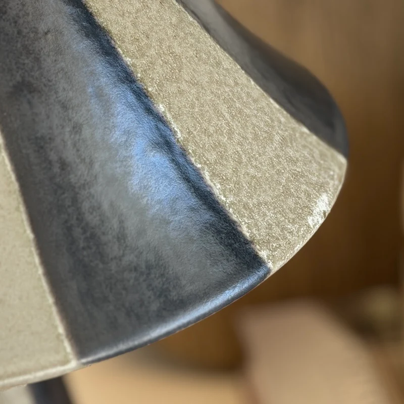 A quietly sculptural table lamp crafted in stoneware, finished with soft earthy tone striping for a timeless, textural feel. Its gently tapered form and muted palette bring a calm, to bedside tables, consoles or reading corners.