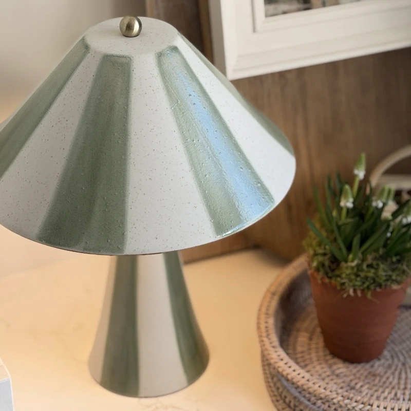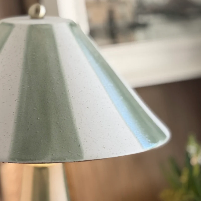 Handcrafted Stripes Verdant Stoneware Ceramic Lamp and Shade